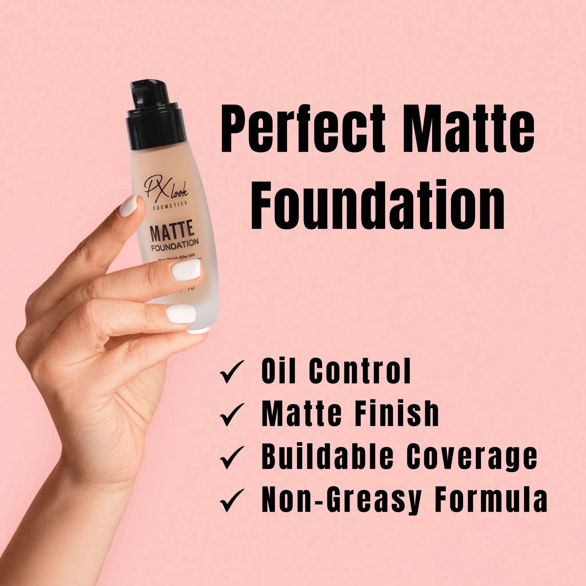 Pxlook Matte Foundation is ideal for oily skin but works well for anyone seeking a matte, oil-free look.